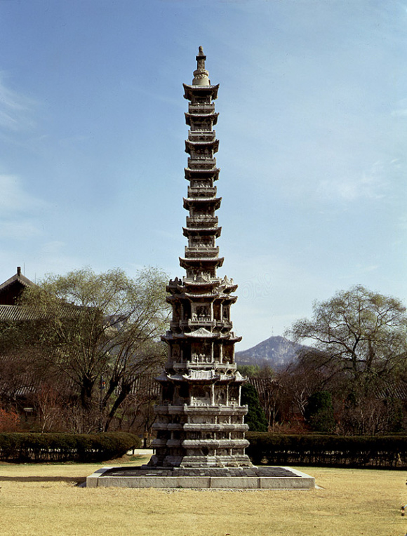 마곡사 풍마동에서 나오는 복잡한 亞자형의 기단은 극도로 화려해지는 경천사지 십층석탑을 통해서 더욱 발전합니다. 국립중앙박물관 일층에 서 있는 이 석탑은 고려식과 티벳식의 절충양식을 보여줍니다. 그러나 이 아름답고 화려한 석탑에는 고약한 이야기가 서려있습니다. 아시다시피 고려 말기에는 기황후 세력처럼 원나라의 세력가와 혼인관계를 맺거나, 혹은 원나라에 진상된 환관들이 성공하면서 고려에 권세를 부리는 이들이 많았습니다. 이들을 권문세족이라고 하지요. 이들은 고려에 많은 불사를 했는데요, 대표적인 것이 이 경천사지 십층석탑이고, 당시에도 대단히 인기가 좋았던 금강산에도 이들이 새겨놓은 불상이 아직도 가득하다고 합니다. 그런데 경천사지 십층석탑에는 발원기가 새겨져있습니다. 석탑을 세운 것은 강융과 고봉룡이라는 자인데, 고봉룡은 원나라에서 벼슬을 했던 경험으로 권세를 부렸고, 강융은 딸이 원나라 재상 탈탈의 소실이되어 부원군까지 하는 권세를 부렸습니다. 결국 이들은 공민왕 때 모두 숙청되게 됩니다.