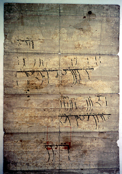 그리고 송광사에 전래되는 많은 유물 중에 오늘 보려고 하는 한 장의 문서가 있습니다. 바로 보물 1376호로 지정된 송광사 티베트문 법지입니다. 훼손이 극심해서 문서의 상당부분이 사라졌고, 표구 과정에서도 순서가 뒤바뀐 부분이 있는 것으로 보이는 이 문서는 오랜 기간 동안 그 정체가 모호한체로 연구의 중심에서 소외되어 있었습니다. 다만 고려시대의 문서라는 것, 그리고 해독할 수 없는 기괴한 문자로 쓰여졌다는 것으로 여겨져왔습니다. 송광사에는 워낙 전래되는 신기하고 특이한 물건들이 많았기 때문에 이 문서도 그러한 것 중 하나려니 여겨져왔던 것이지요. 송광사에서 전래되는 이야기에 따르면 이 문서는 송광사 16국사 중 6대인 원감국사(1226~1293)가 원나라에 다녀오면서 원 세조(쿠빌라이칸)을 만나 대접을 받고 돌아오는 길에 받아온 일종의 통행증이라고 했습니다. 그리고 사용된 글자를 원나라 시기 티벳불교 사까파의 법왕으로 몽고문자를 만들었다고 전하는 빠끄빠(파스파 八思巴라고도 함)이 만든 전설적인 몽고문자라고 여겨져 오랫동안 송광사 팔사파문서라고 전해져왔습니다.