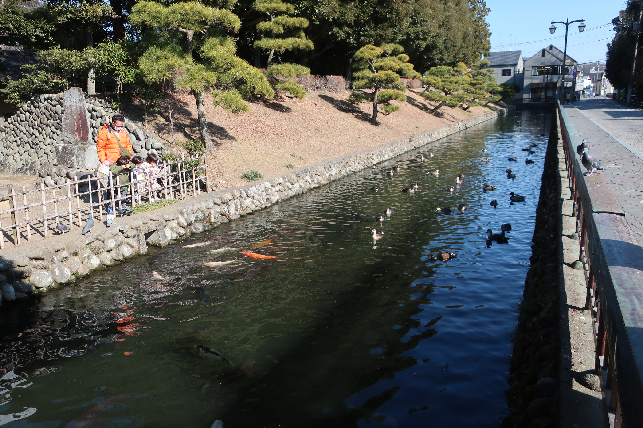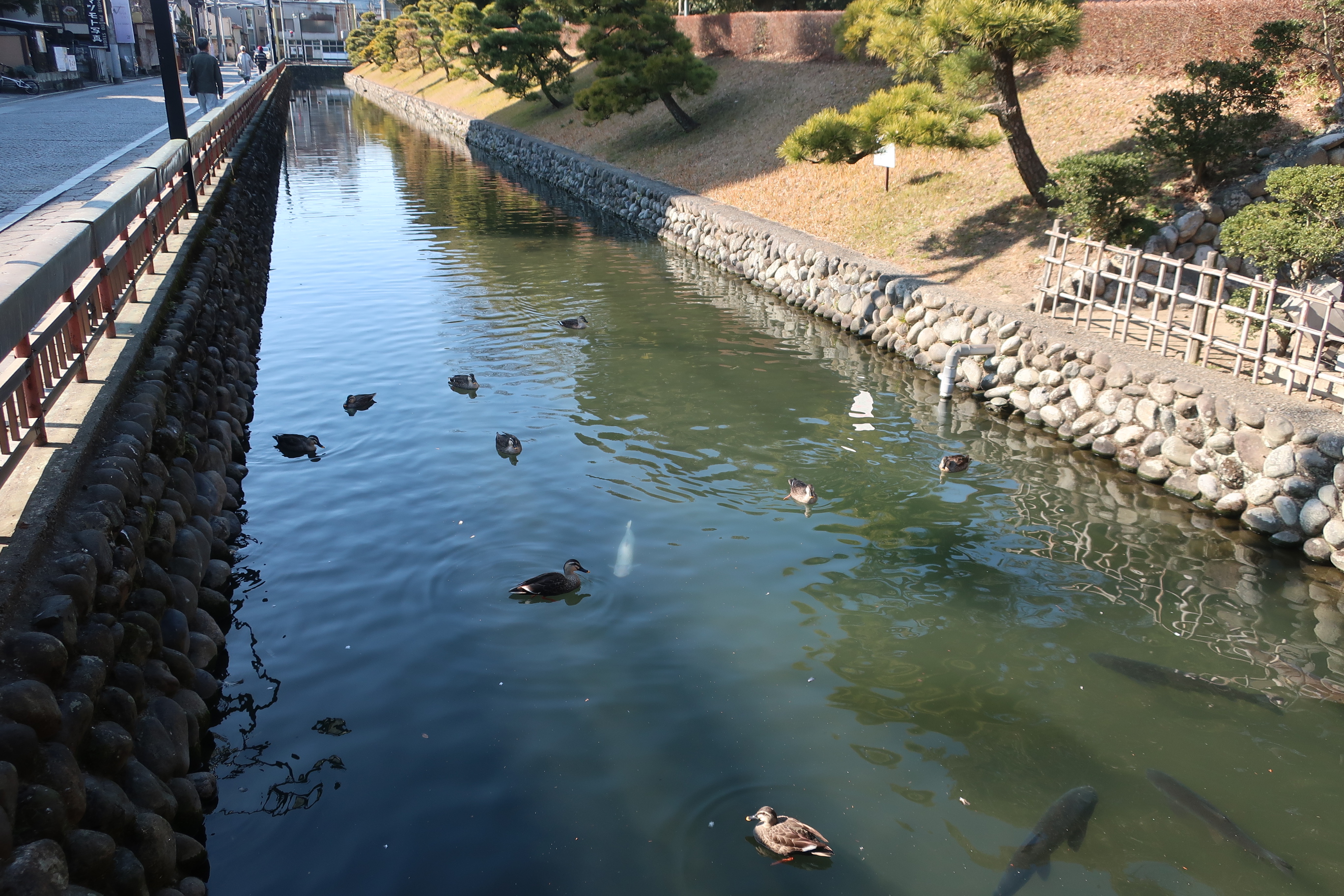 해자에 오리들이 놀고 있다