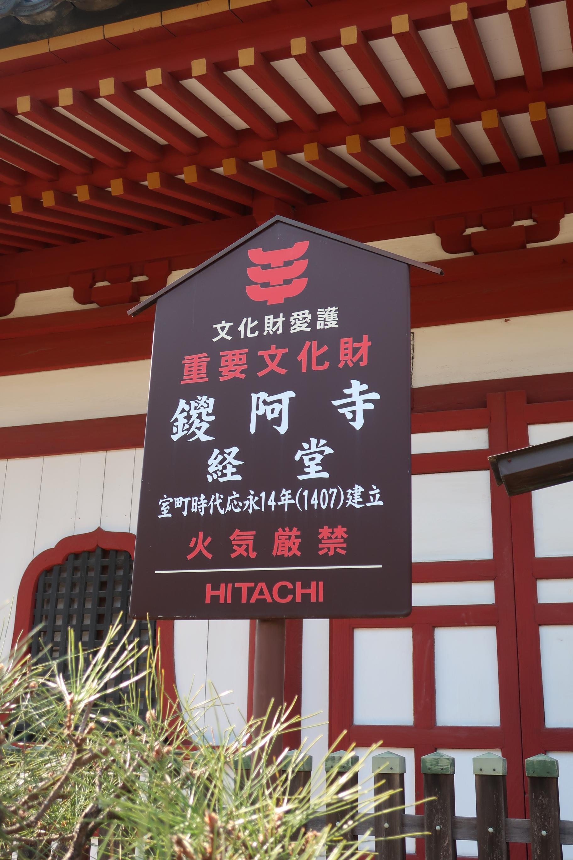 1196년 건립이라고 되어 있는데 화재로 인하여 1299년 다시 지은 것이 지금 건물이다. 전체적으로 화양(와요)에 선종양(젠슈요)의 특징을 받아들인 건축을 하고 있는데, 밀교사원에서 선종양을 받아들인 대표적인 사례이고, 칸토지방에서도 가장 오래된 선종양 건물로 의미가 깊어 국보로 지정되었다