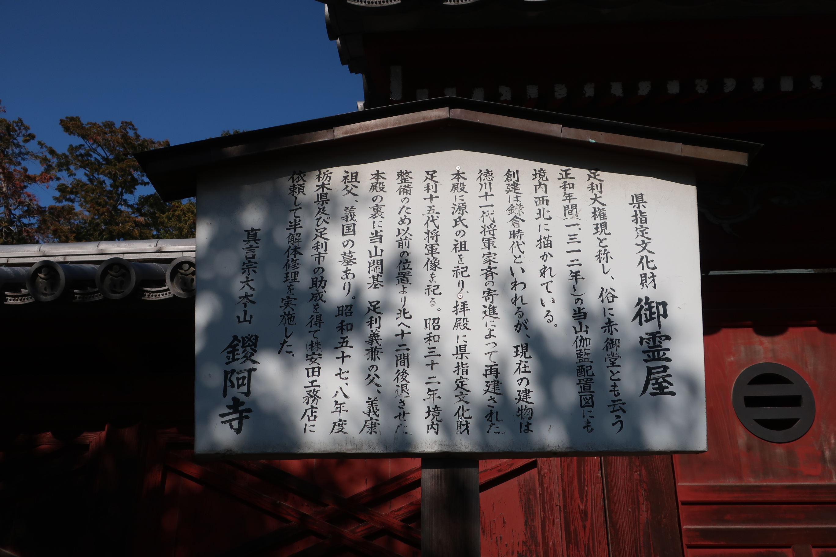 이후 가마쿠라시대에 아시카다 요시카네가 해자 안에 불당을 짓기 시작하고, 이후 아시카가 요시우지가 가람을 정비하고 아시카가씨의 우지데라로 삼았다. 가마쿠라시대에 지은 본당이 남아있고, 이후 무로마치시대와 에도시대에 여러번 재건을 거쳐 지금의 모습이 되었다.