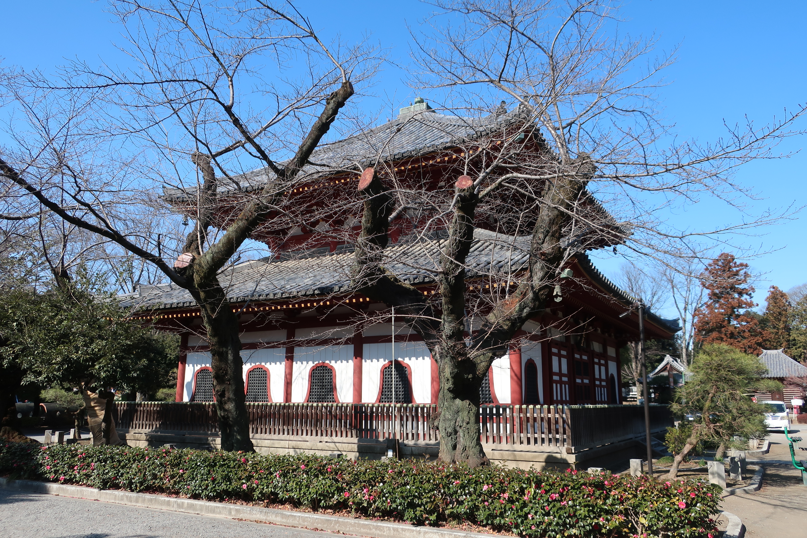 에도막부의 5대 쇼군인 도쿠가와 츠나요시의 생모인 케이쇼인이 기진한 건물이다