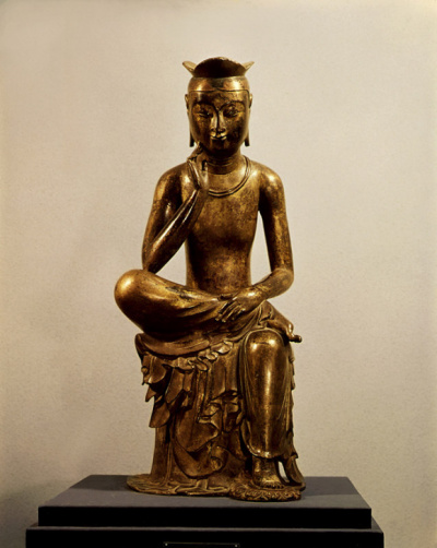 여담이지만 반가사유상에 대한 이야기를 좀 해야 할 것 같습니다. 위 사진은 우리가 잘 알고 있는 국보 금동미륵보살반가사유상입니다. 우리는 보통 반가사유상은 보통 미륵보살의 모습으로 알고 있습니다. 그러나 사실 반가사유상의 기원은 석가여래에서 찾을 수 있습니다. 석가모니가 아직 속세에서 태자로 있을 때, 성 밖에서 생로병사의 모습을 보고 출가를 결심하기 까지의 고민이 기간이 있었습니다. 반가사유상은 바로 석가모니가 출가하기전 태자의 모습에서 따온 도상입니다. 그렇기 때문에 중국에서는 흔히 이를 태자사유상이라고 부르며, 석가여래의 도상으로 많이 생각하고 있습니다. (물론 미륵보살이나, 관음보살이 반가사유상의 주인공으로 등장하는 경우도 있습니다.) 반대로 일본에는 불상의 명호(名號)가 기록된 반가사유상이 많이 전해지는데, 일본의 경우는 죄다 미륵보살이라고 전해지고 있습니다. 한국의 경우도 일본의 경우를 많이 참고하여 반가사유상을 거의 다 미륵보살의 상이라고 보고 있는데, 사실 반가사유상 중 명호가 적히 불상이 하나도 전해지고 있지 않기 때문에 미륵보살이 아닌 가능성도 있습니다. 일본의 초기 불교가 한반도에서 전래된 것을 생각하면, 그리고 여러 정황상 백제의 반가사유상은 미륵보살일 확률이 높겠지만 확언할 수는 없습니다. 그래서 이 글에서는 여러 미륵보살을 보여드리되 반가상은 예의 설명에서 제외하겠습니다.