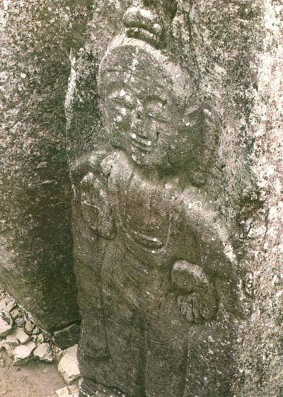 따라서 한반도에 불교가 전래된 이후로 미륵신앙에 대한 인기는 높았습니다. 특히 삼국시대는 정치적으로 혼란스러웠기 때문에 미륵 신앙에 대한 지배층의 선호도가 높았습니다. 특히 신라는 화랑도의 이념을 미륵신앙에서 두고 있었고, 미륵이 신라에 환생하였다는 믿음을 가지고 있었습니다. 삼국유사에 나타나는 진지왕 때 미륵의 화신이 신라로 내려온 미시랑이 신라의 화랑이 되었다는 이야기는 삼국시대 신라의 미륵신앙을 잘 보여주는 이야기입니다. 사진에 나오는 불상은 김유신이 칼로 바위를 갈랐다는 (요새 선덕여왕이 나오더군요) 단석산에 있는 거대한 미륵입상입니다. 백제의 미륵신앙도 만만치 않았습니다. 익산에 위치한 미륵사는 경주의 황룡사보다 더 큰 절이었던 것으로 추정하고 있습니다. 고구려의 경우 구체적인 기록은 남아있지 않지만 국보로 지정된 고구려 금동불상의 뒷면에 미륵부처를 조성했다는 기록이 나오는 것으로 보아 고구려 역시 미륵 신앙이 성행하였음을 알 수 있습니다.
